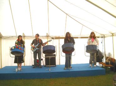 The two bottom photos show a folk-dance troupe performing a Yorkshire clog dance, and a Trinidad-style pan band.
