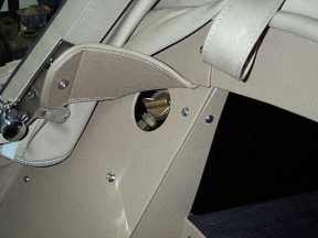 Huntley Perry of Maryland USA has probably one of the most original restored Jupiter anywhere in the world, following the most careful research. A rare sight in Jupiters these days is the authentic tool locker. The pictures below (top row) show it in Huntley's car...whilst in the bottom row we see the cover for the reserve fuel tap, again closed and open. The reserve tap was deleted for 1952.